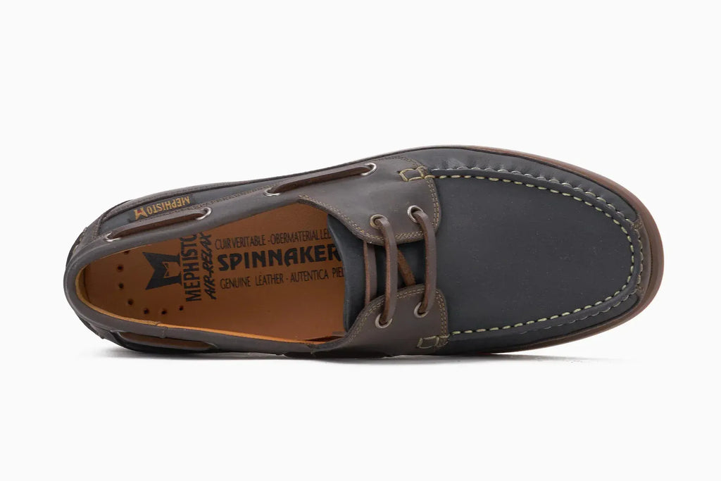 MEPHISTO BOATING | Men Boat Shoes. Comfortable and easy to slip on, this boat-type model is a must for sunny days. The SOFT-AIR midsole and the SHOCK-ABSORBER, integrated in the outsole, minimise impact for a gentle, effortless walk. The AIR-RELAX technology respects the anatomy of the foot to prevent fallen arches. Its lace-up fastening ensures optimum comfort and an excellent fit. Its leather lining promotes a healthy climate inside the shoe.
