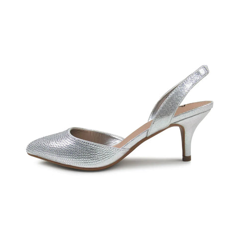 Glow like an angel wearing these evening shoes . Comprising of a durable upper with rhinestone embellishments and a gently cushioned footbed with signature lettering detail and an anti-slippery outsole with supportive kitten heel.