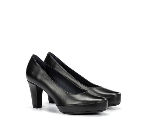 Simply put, this is The Perfect Pump. With its platform under the forefoot it reduces the arch of the foot without losing height making it unusually comfortable for a pump. Simple contemporary design that fits a wide variety of foot types, available in multiple colors, it is a timeless model with guaranteed comfort!