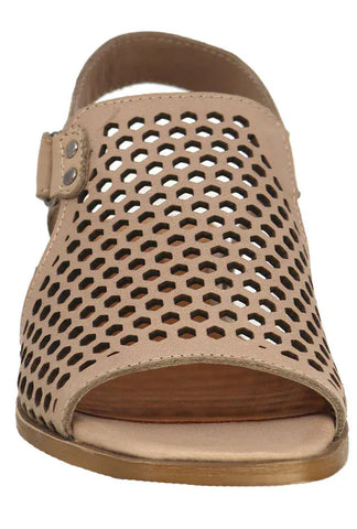 Step out in style with the Everly Tessa sandal. Made of luxurious leather, this sandal features unique hexagonal cut outs and an adjustable velcro strap closure for a comfortable fit. With a 1" stacked heel, you'll elevate your look while staying comfortable all day long.