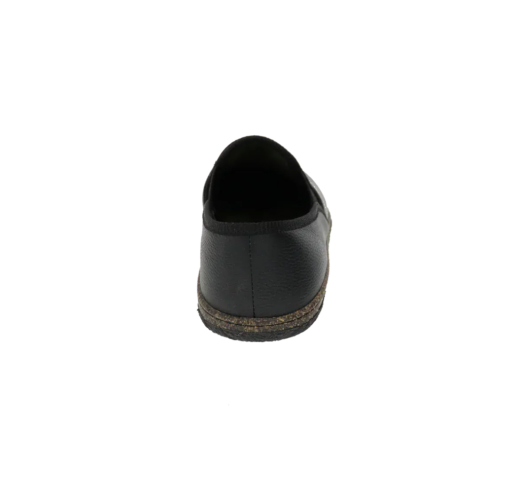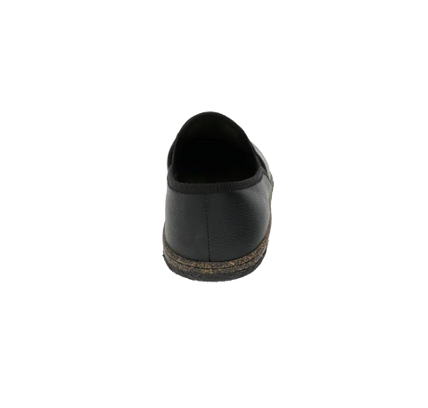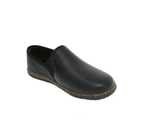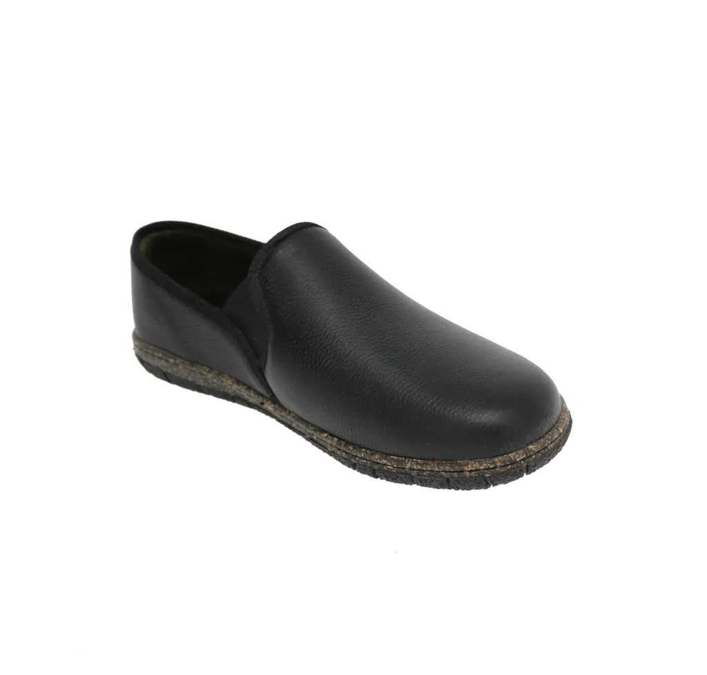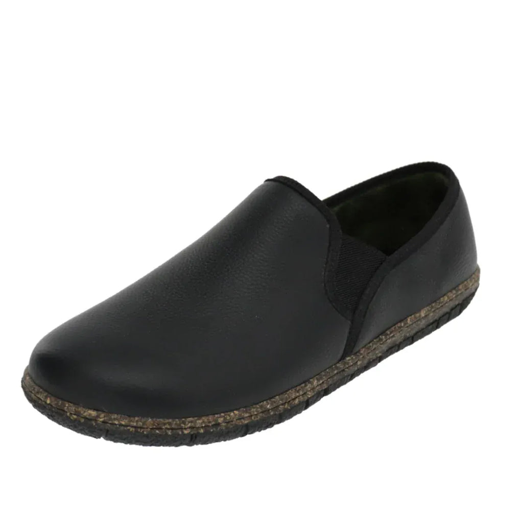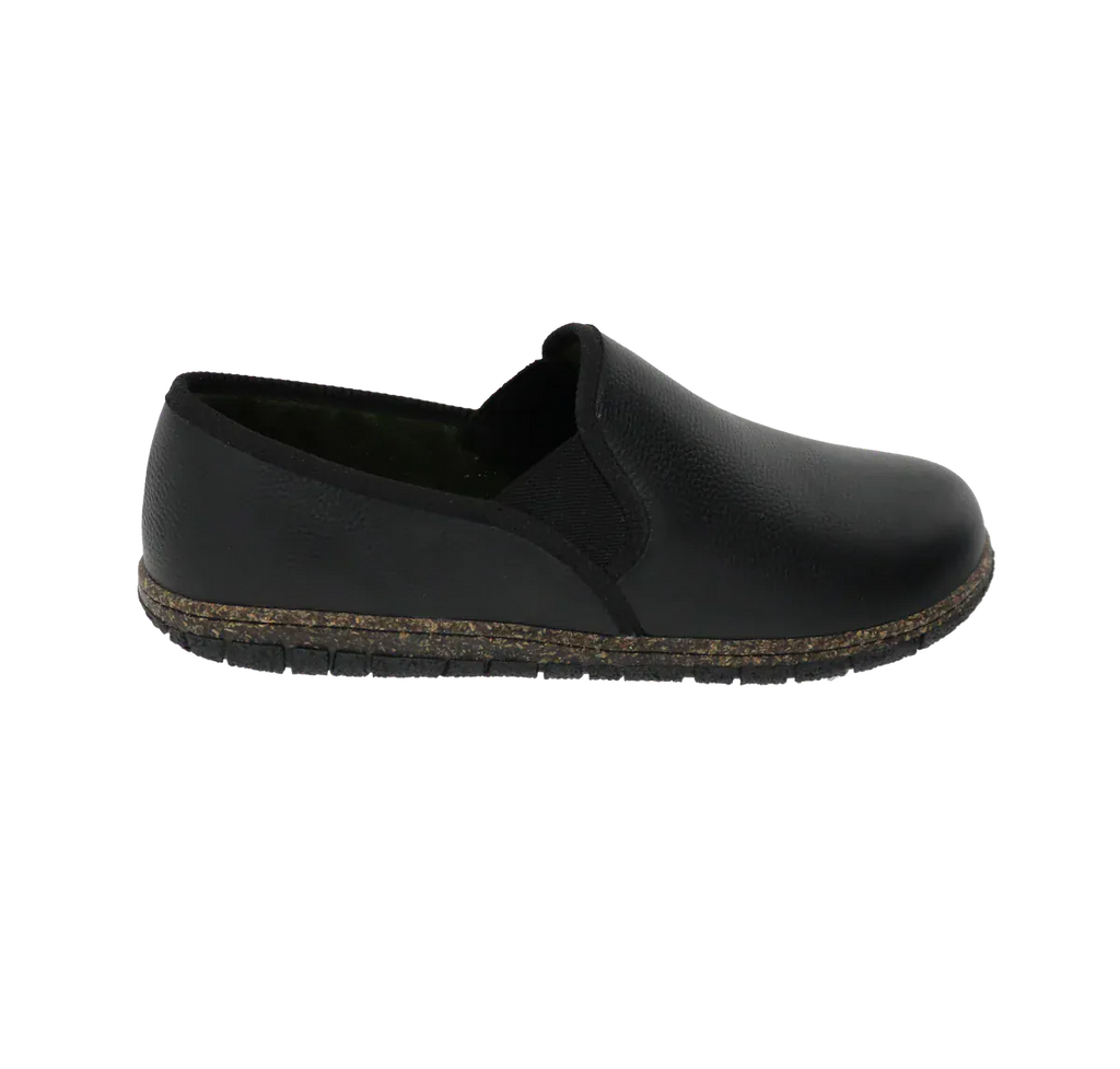 This casual slipper features a tumbled leather upper with dual elastic gores for an easy on-and-off. Inside, a cushioned memory foam insole with an anti-bacterial lining provides optimal cushioning and support while a breathable microfibre lining enhances comfort. A flexible rubber sole delivers shock-absorbing traction and is non-marking to protect floors.
