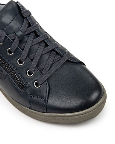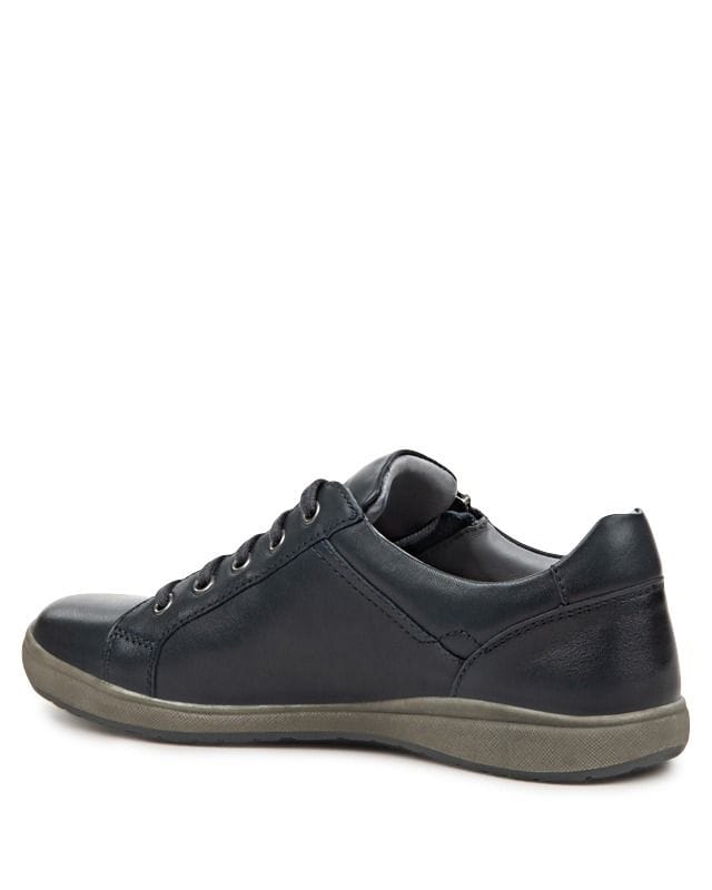 The Caren 12 casual fashion trainer is a must-have for any wardrobe. This leather sneaker will perfectly transition you into autumn with a comfortable cushioned insole and soft leather linings. Finished in classic navy blue leathers with a unique side zip design and a neutral off-white sole unit. With lace up fastening and stylish fashion features this is the perfect casual trainer shoe for all-year-round wear.