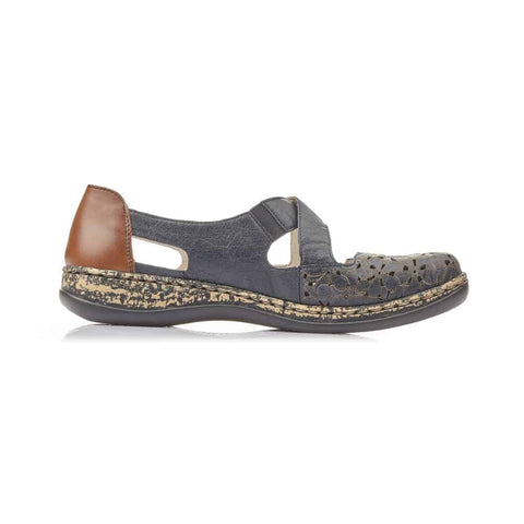 Rieker Women's 463H4-14 Daisback Perforated Mary Janes- Blue