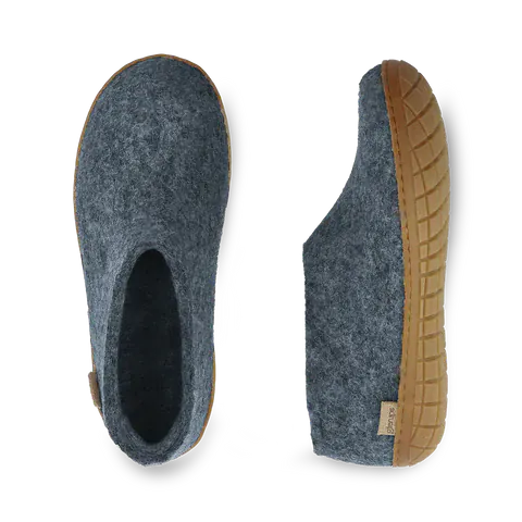 Glerups Rubber Sole Shoe Slippers- Denim Blue