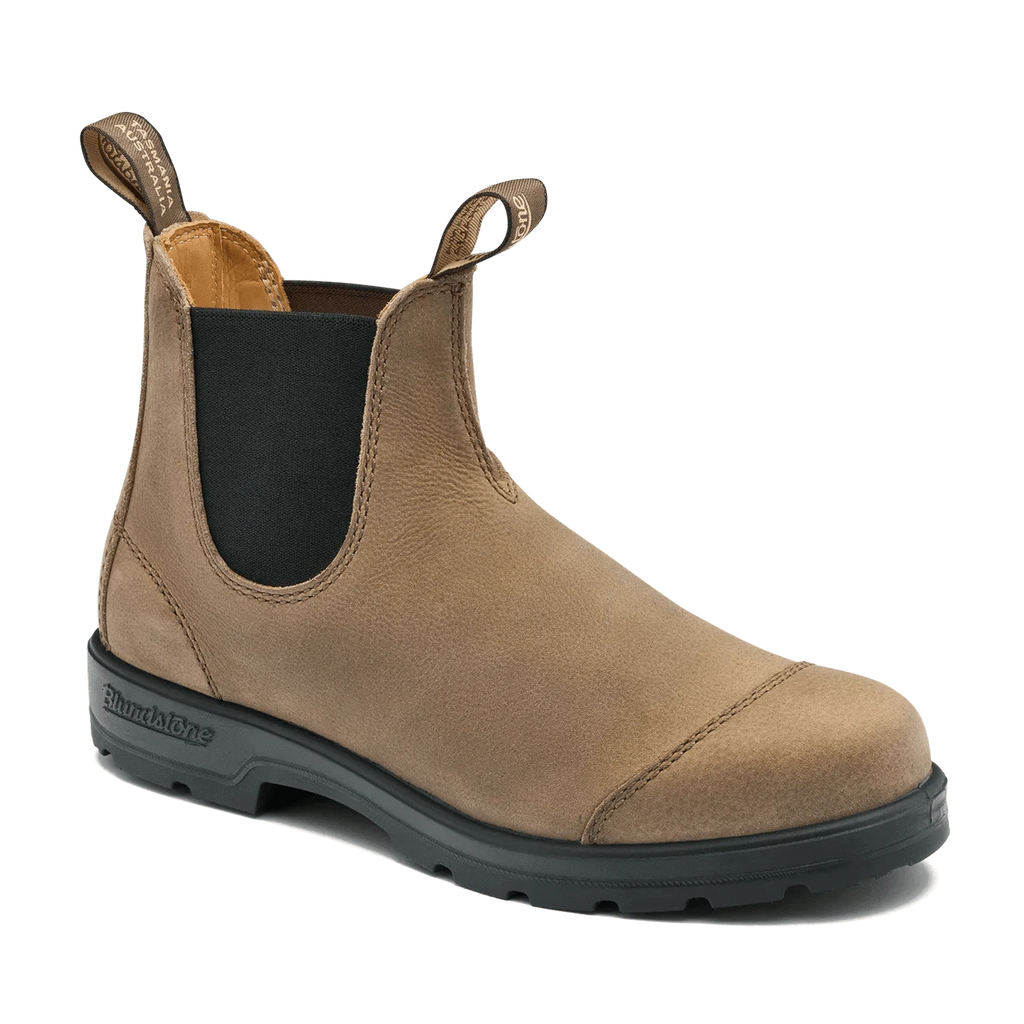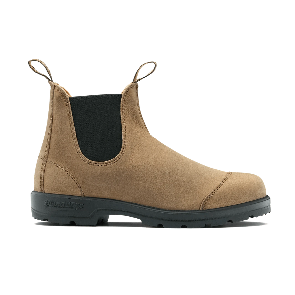 Classics #2546 in Sand pairs waxed pebble leather with refined brogue-style toe stitching for a distinctive take on the iconic Blundstone Chelsea boot. Made for all-day dry comfort and all-season versatility, this style offers outstanding wear characteristics and easy care, ready to go wherever the day takes you.