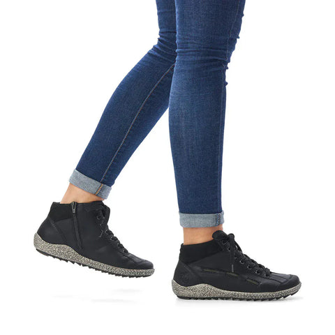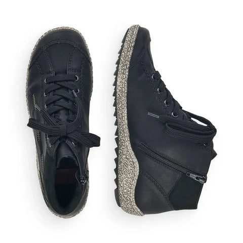Rieker Women's L7543-00 Lace & Zip Ankle Boots- Black