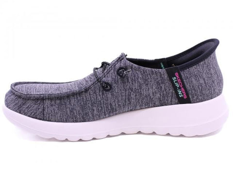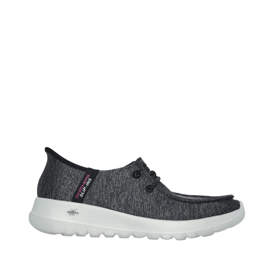 Step up your routine with easygoing comfort wearing Skechers Slip-ins®: GO WALK Joy™ - Ibis. Designed with our exclusive Heel Pillow™, this moc toe slip-on features a heathered mesh upper with tied-off decor laces, a cushioned Skechers Air-Cooled Memory Foam® insole, and lightweight 5-GEN® cushioning.