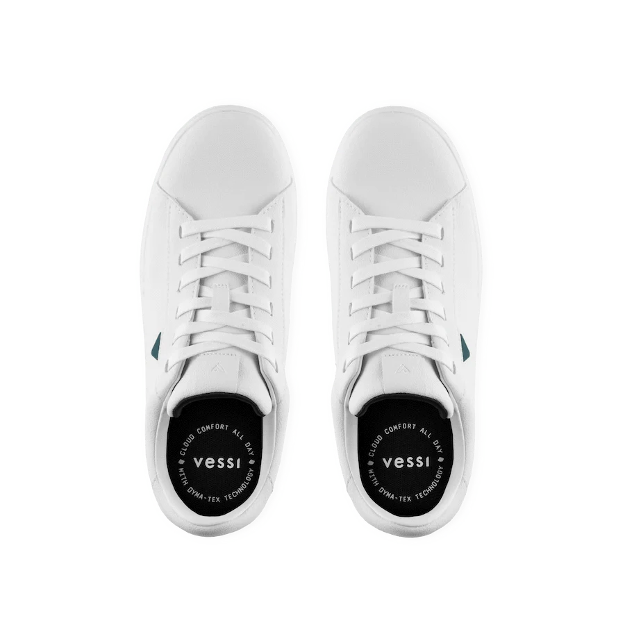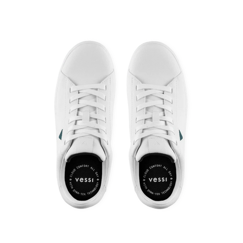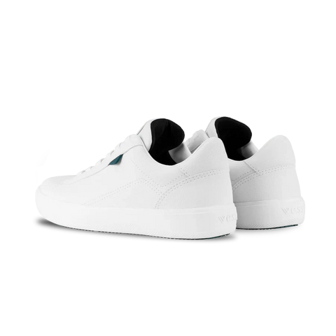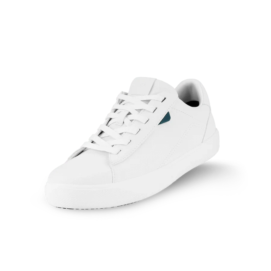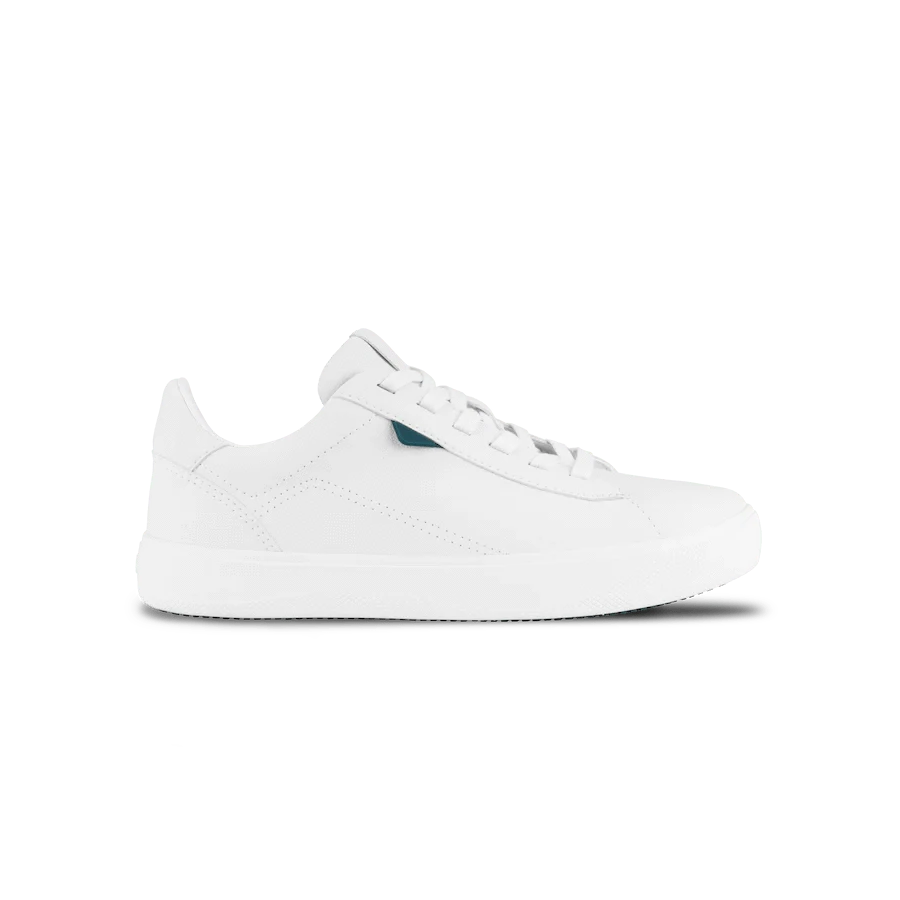 Minimalist easy-to-clean vegan leather sneakers with a padded tongue and waterproof Dyma-tex® technology for style versatility.