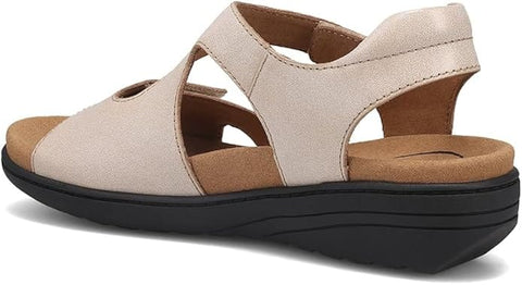Beautiful leather uppers and completely adjustable design giving you a secure fit. Featuring our Structured Support footbed covered in microsuede with exceptional arch & metatarsal support on the perfect low wedge design.