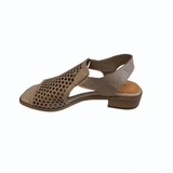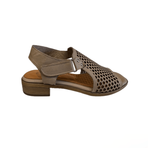 Step out in style with the Everly Tessa sandal. Made of luxurious leather, this sandal features unique hexagonal cut outs and an adjustable velcro strap closure for a comfortable fit. With a 1" stacked heel, you'll elevate your look while staying comfortable all day long.