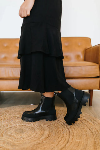 The Shani Waterproof chelsea winter boot from Cougar is a mid height pull on leather and rubber upper combination. Designed with a rounded toe for added comfort. Double elastic gore closure for an easier on off. Featuring 200g PrimaLoft Gold Insulation and polar plush lining.Thermoplastic rubber outsole with 2 inch heel with a heel and toe scuff guard.