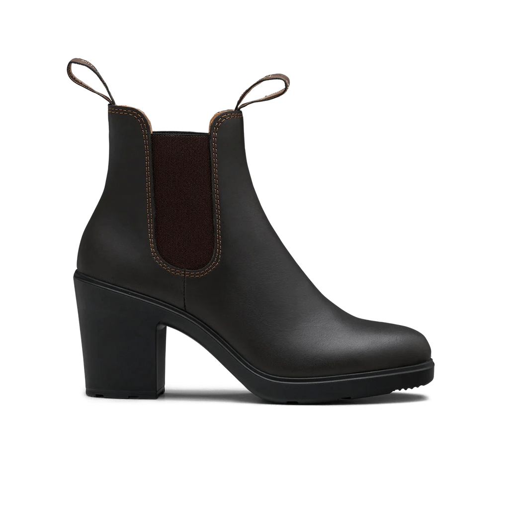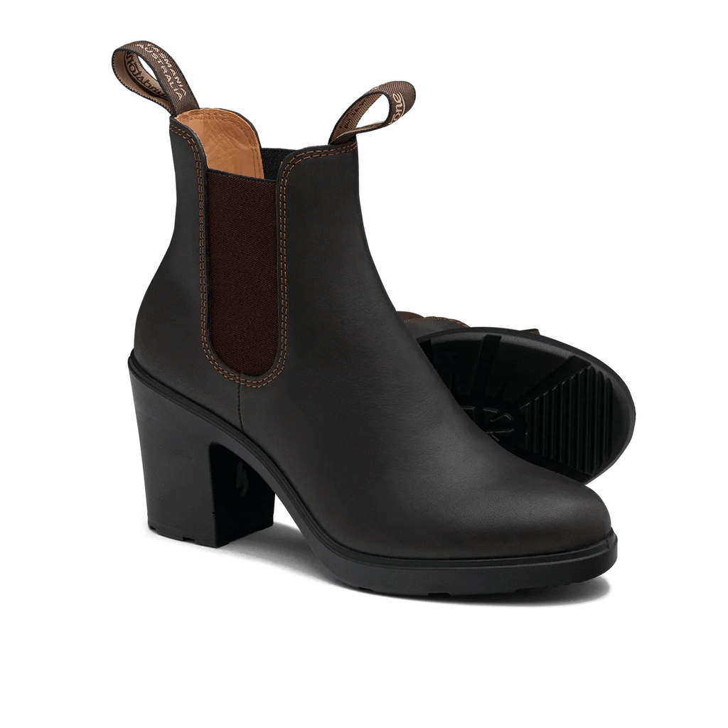 Here’s the heel you can wear all day—bring it on ready, practical and fun. New Blundstone High Heel #2366 in Stout Brown. Three inches of over-the-top comfort. Perfect travelers to pair with a skirt, leggings or jeans.