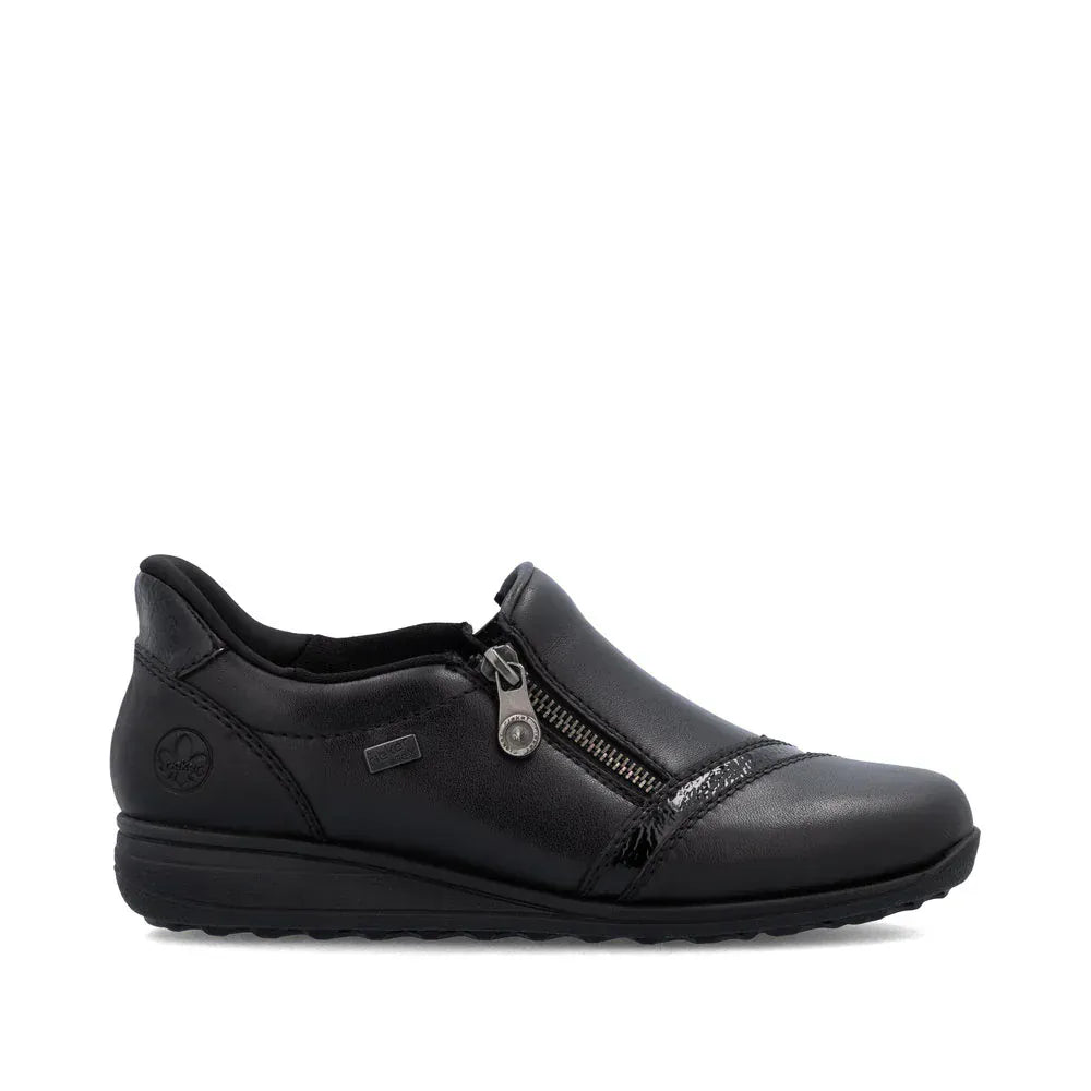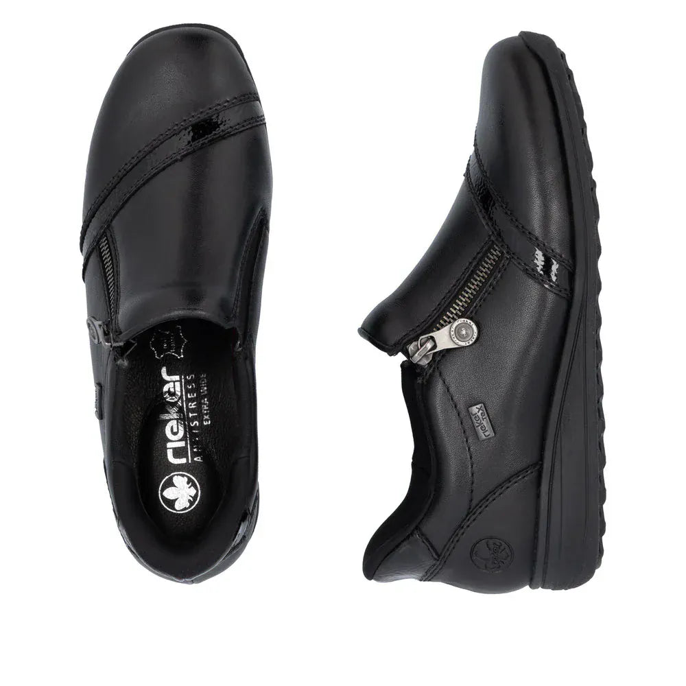 Rieker Women's 47264-00 Zip Loafer Booties- Black