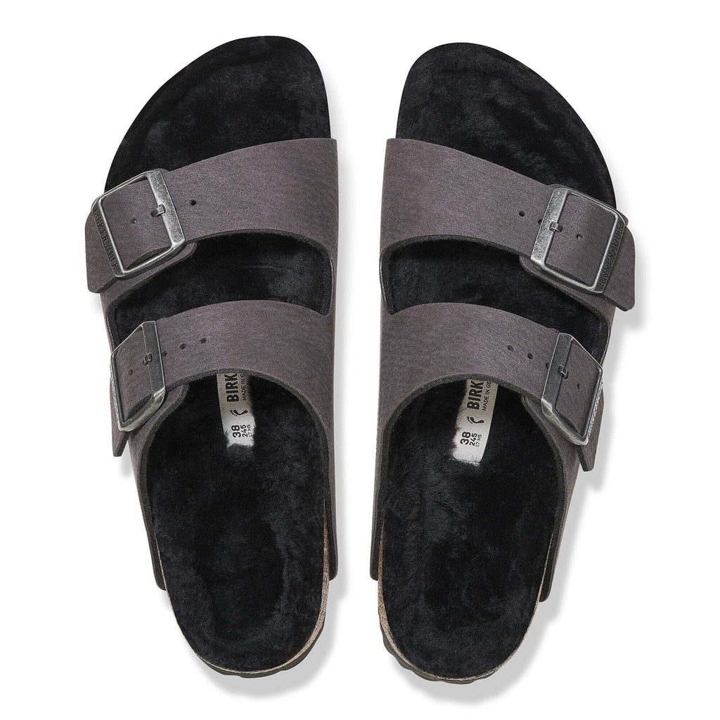 Birkenstock Arizona Shearling Sandals- Desert Dust Black