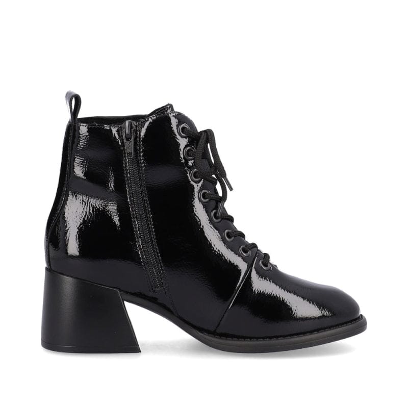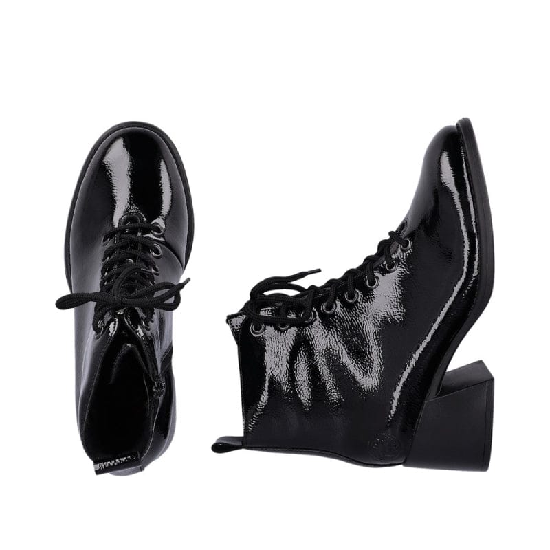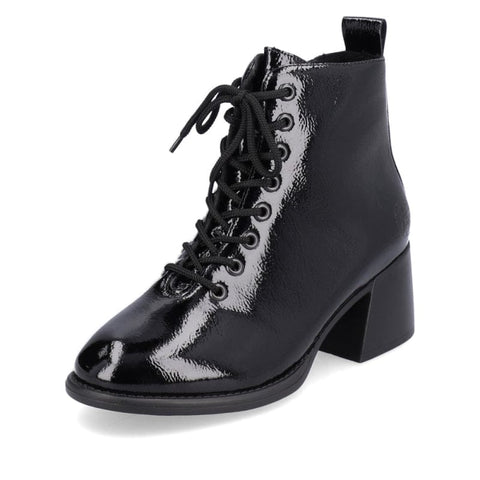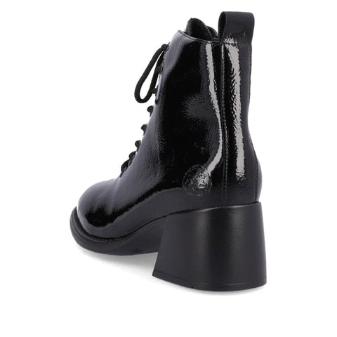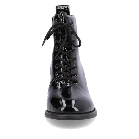 Rieker Women's 79302-01 Heeled Combat Boots- Black Patent