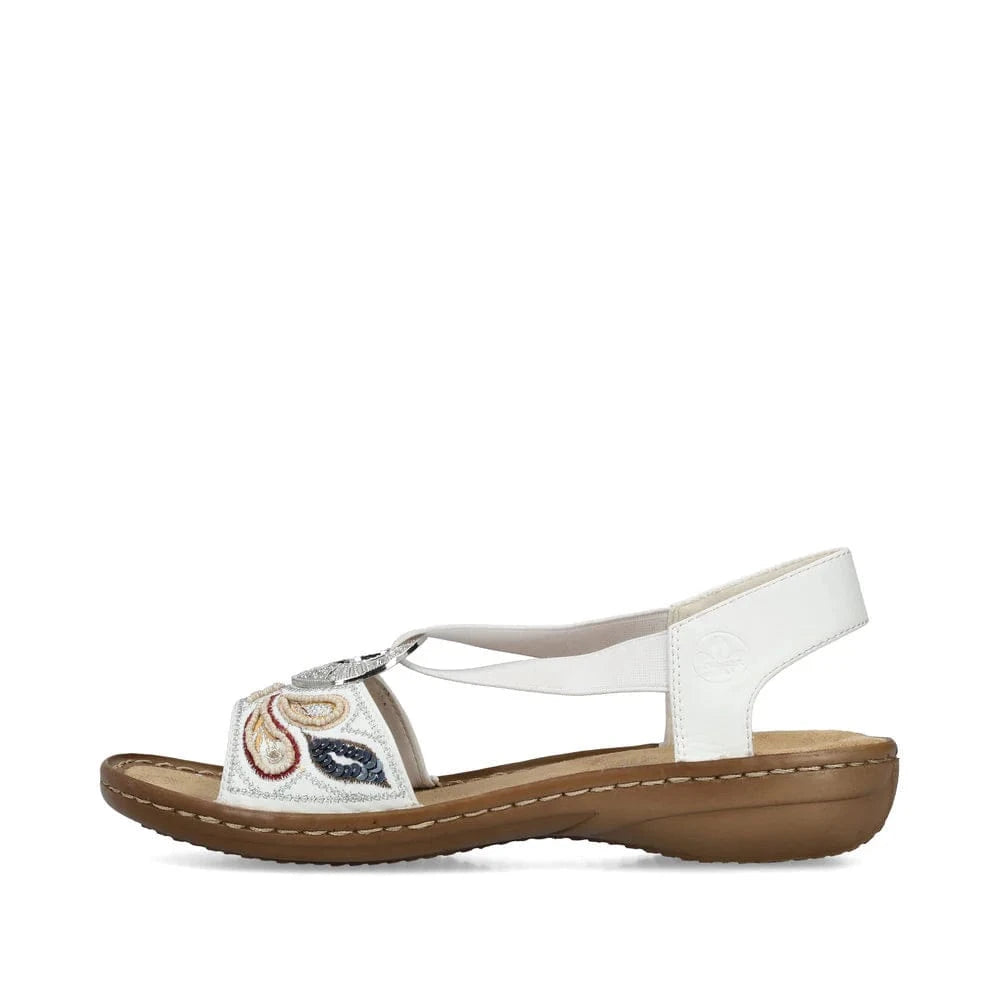 Rieker Women's 608B4-80 Elastic Slingback Sandals- White Combi