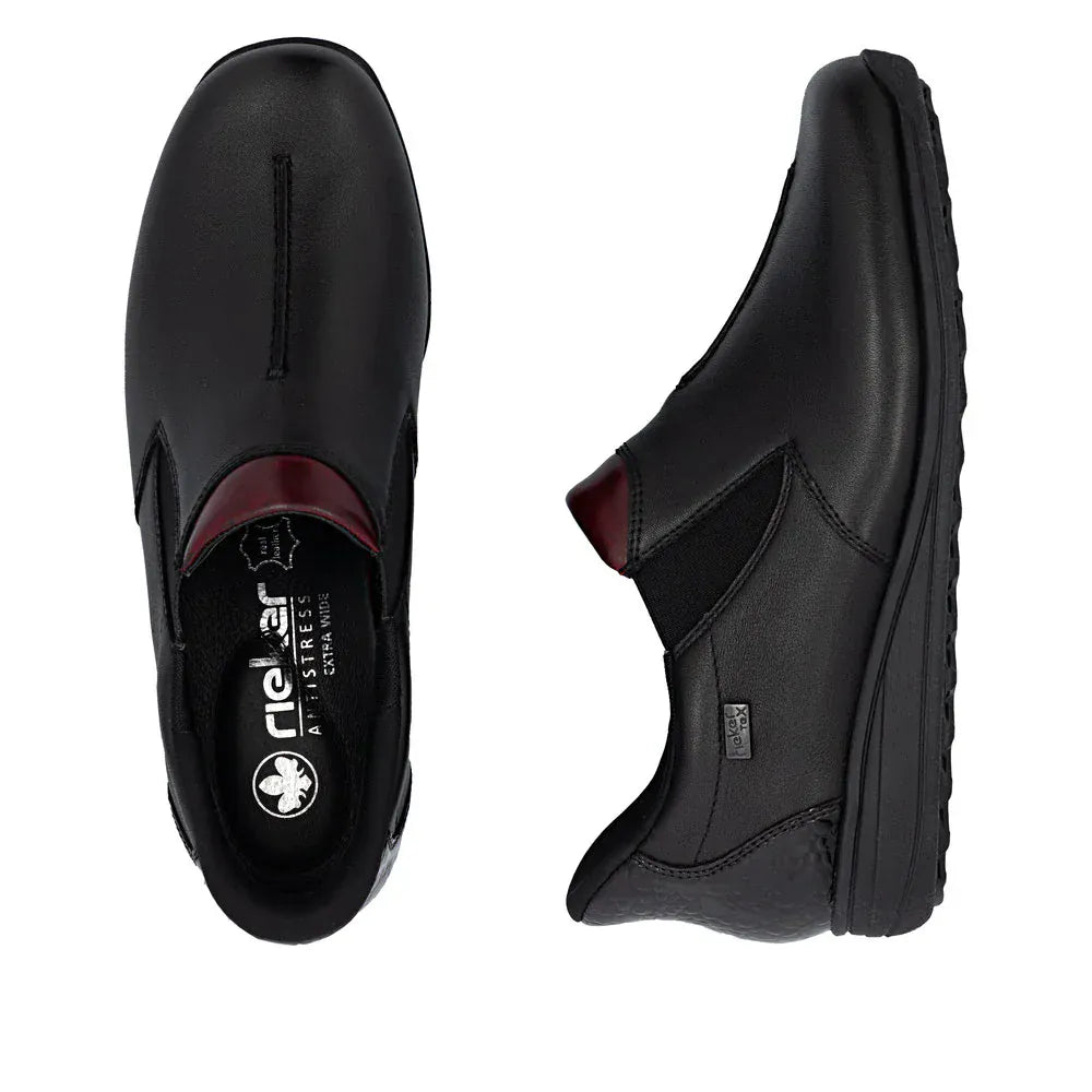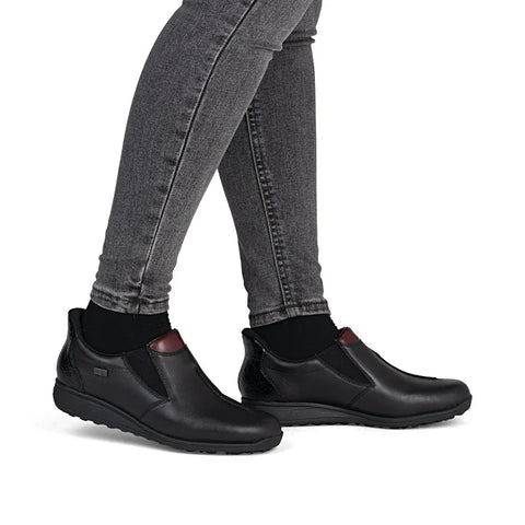 Rieker Women's 47253-00 Loafer Booties- Black/ Wine