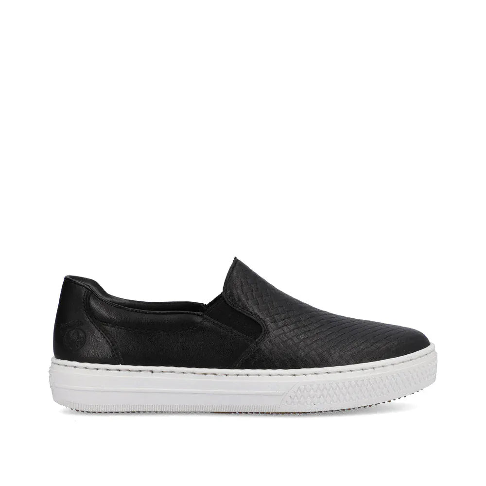 Rieker Women's L5967-00 Woven Slip On Sneakers- Black