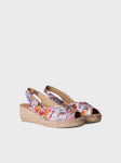 BERNIA-PM is a peep toe espadrille for women. It is made from smooth leather and a breathable textile lining. The jute wedge has a total height of 5 cm, of which 3 cm belong to the heel and 2 cm to the sole. The base of the sole is made of non-slip rubber. The inner sole is made of leather, and the back strap is elasticated on the inside for a perfect fit. This model is available in plain colours. The leather and sole are hand-stitched together with cotton thread.